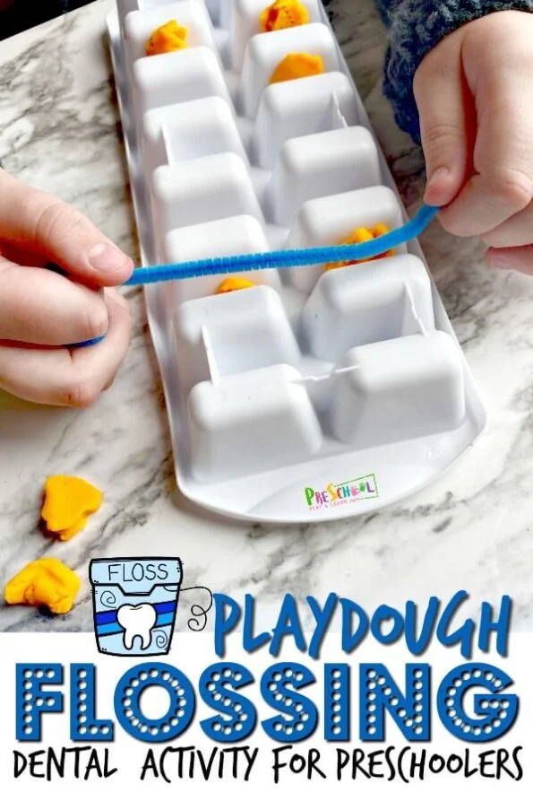 3. Teach flossing and the importance of dental health – flossing play dough on egg cartoon – teachingmama