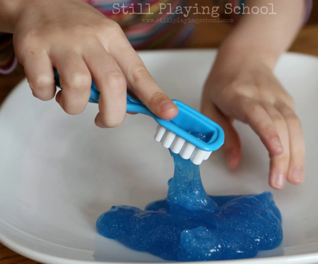 8. Sensory toothpaste slime brushing activity for toddlers – stillplayingschool